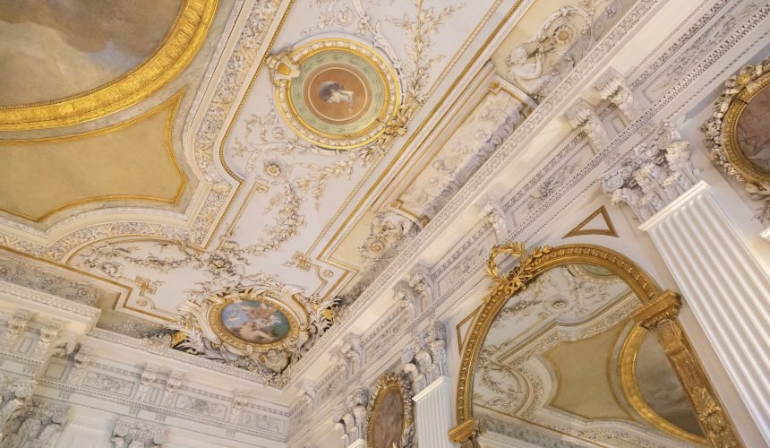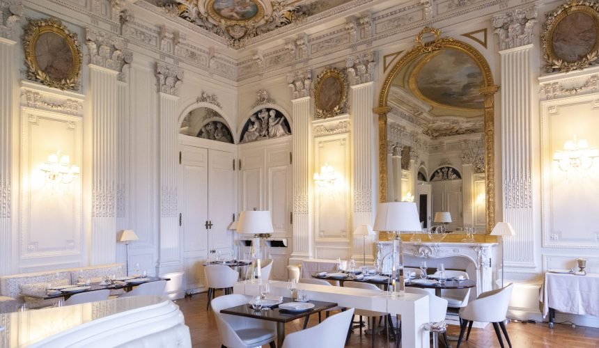 Ancien salon de musique de la famille de Rothschild, le salon blanc abrite une fresque incroyable au plafond, de nombreuses moulures et un superbe lustre. Une pièce dotée d'une architecture incroyable dans une atmosphère chic et lumineuse..